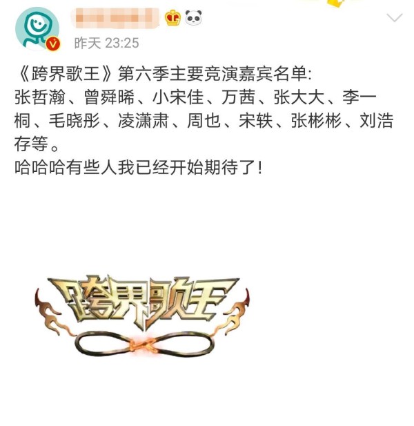 《跨界歌王6》竞演名单曝光,11位演员在列,资源小花首迎正面PK《跨界歌王6》拟邀嘉宾曝光,多位歌手加入,脱口秀演员参加挺意外