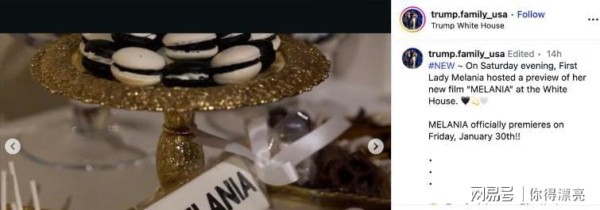 据报道,宾客离场时都捧着满手的梅拉尼娅周边纪念品:装裱好的电影票、印有梅拉尼娅姓名的黑白配色饼干、限量版《梅拉尼娅》书籍,以及黑白双色的纪念版爆米花盒。