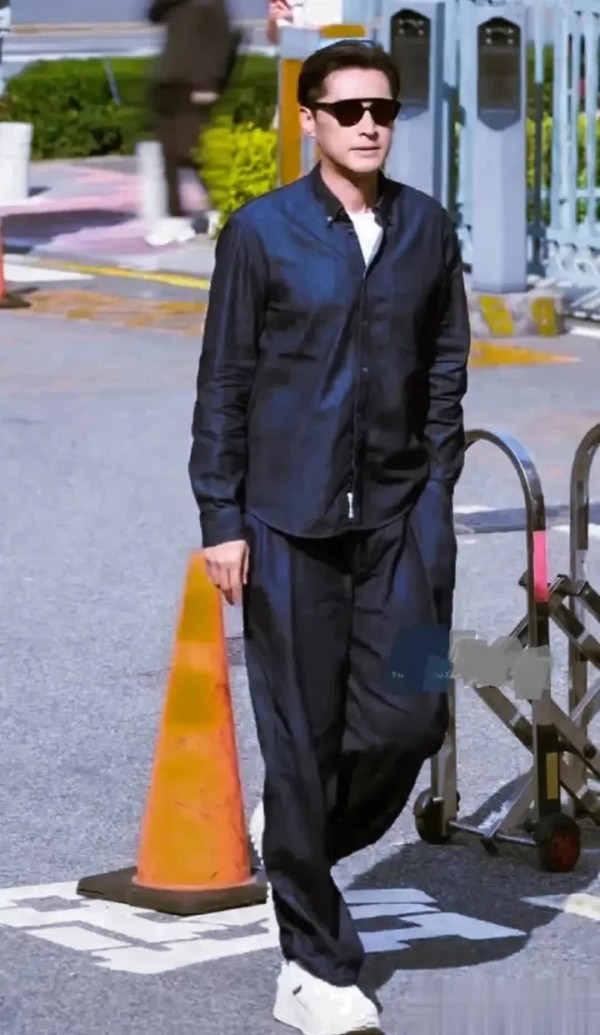 ‖让我们一起来解析一下他那身白色打底衫搭配深蓝色套装,脚踩白色运动鞋的造型,探寻其中的时尚密码,并学习如何打造像他这样令人眼前一亮的时尚形象‖