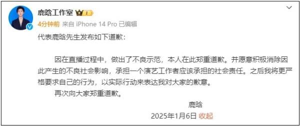前顶流偶像鹿晗因“违规”被全平台限流并禁止关注的消息,给这个娱乐圈抓马之周又添上了浓墨重彩的一笔。这一次鹿晗工作室也没有像此前一些明星那样含含糊糊做“谜语人”,火速发布道歉声明,算是大方承认这次被处罚源于之前直播中飙脏话和竖中指等一系列“放飞自我”的行为。