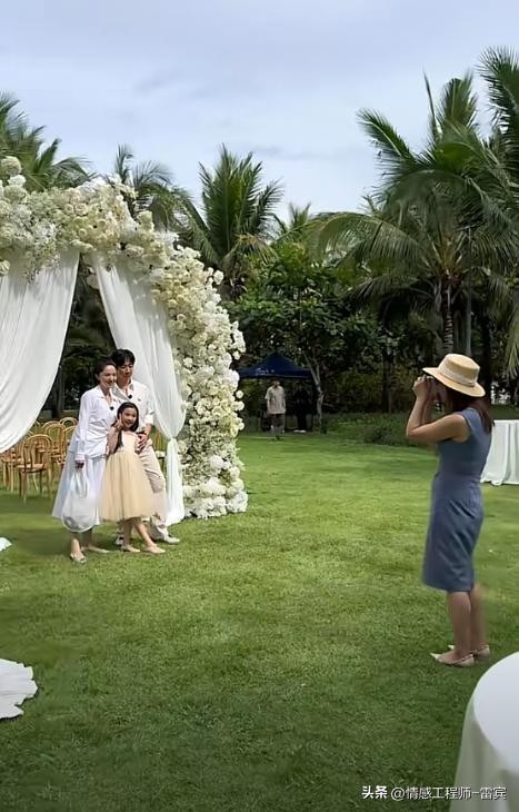 另外,还有网友偶遇了董璇一家3口在婚礼现场的画面。董璇一身白衣配白裙十分优雅漂亮,张维伊和董璇穿着同色系的情侣装,女儿小酒窝则穿着金色的公主裙。一家3口站在草地上合影,定格美好的瞬间。