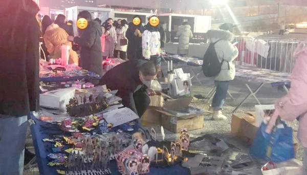 当抵达周边售卖广场时,已是五点一刻,距离活动开场仅剩十五分钟。然而,小摊的生意却依然兴隆不衰。粉丝们在活动现场支持偶像的同时,形成了一个小型经济圈,摊位生意兴隆,反映出粉丝经济的力量。