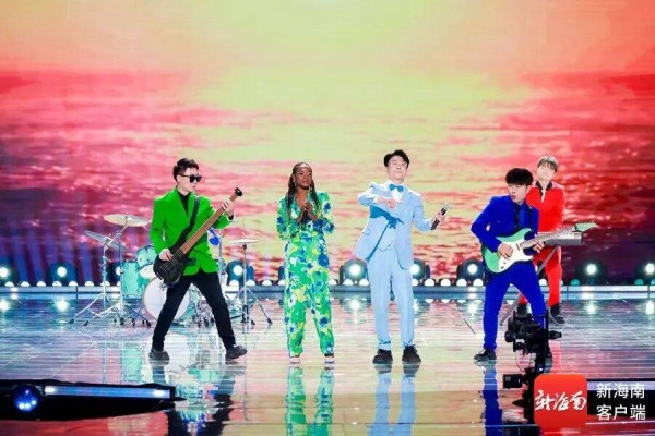 “焕新”还体现在艺术形式的跨界混搭上。沙画艺术家何素丹、音乐人杨添与乐队合作的《海南海南》,让沙粒的流动与音符的起伏同步,绘制出视听一体的海南图景;本土说唱歌手奇他仁创作的《大家的自贸港》,用潮流说唱包裹通俗旋律,曾在网络引发全民参与的手势舞则让录制现场气氛再次火爆;岛诞团花式篮球队以椰子为创意道具,将街头篮球的潮酷动感与海南本土元素巧妙融合;本土音乐人狂牛Crazy Bull和“陵水表妹”古巴的Tania一述一唱、一中一西,用原创作品《海之南的绿野仙踪》唱出对这片海岛的赞美与眷恋。
