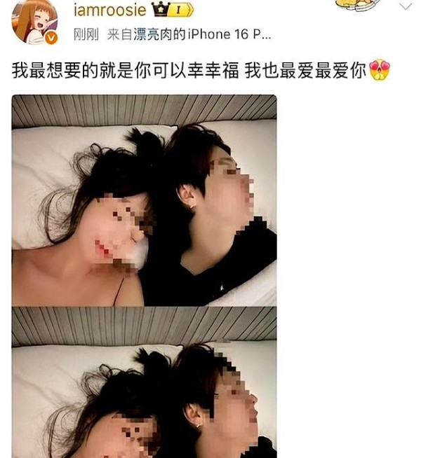一张网红司晓迪发出的,她和鹿晗躺在一张床上的照片。