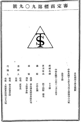 公司的商标蕴含了企业经营理念。泰山公司的宣传策略试图在国货和洋货之间寻找平衡,与很多国货商标不同,其商标选取了三角形,中间是英文字母“TS”,未出现汉字,针对的客户群也涵盖了西方市场(图3)。洋货进入中国市场后,近代买办扮演了参与交易的代理人角色,而泰山公司成立之初就将市场投向了海外。[7]它通过建立分理制远赴南洋,虽然泰山砖瓦在海外的营销情况尚不得而知,但台湾地区知名的彩陶企业在南洋设置代理商,华人若在熟人社会中看到该种材料被大量使用,那么他可能会在返乡后沿用这种具备身份象征的建筑材料。[8]泰山砖瓦的市场开拓与这一海外策略类似,树立民族品牌的国际化地位是其战略意图之一。