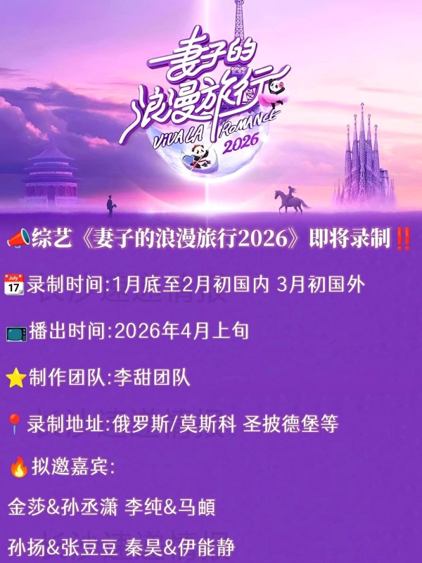 《妻子的浪漫旅行》第七季:强大嘉宾阵容与剪辑套路解析《妻子的浪漫旅行》2025阵容官宣,四对明星夫妻开启跨国浪漫之旅