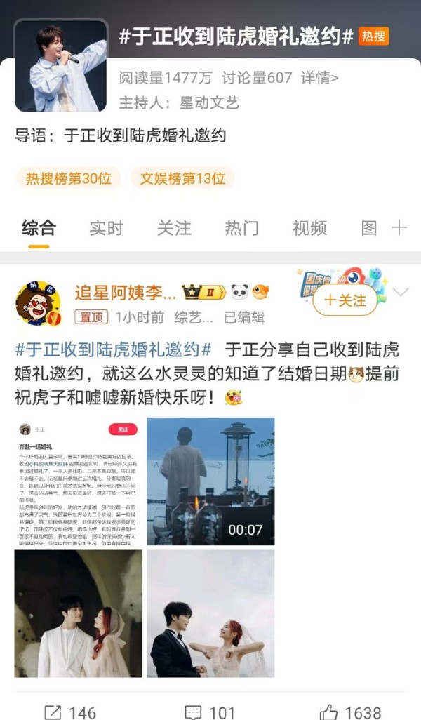 于正收到陆虎婚礼邀约,提前剧透引发网友热议!于正的祝福!