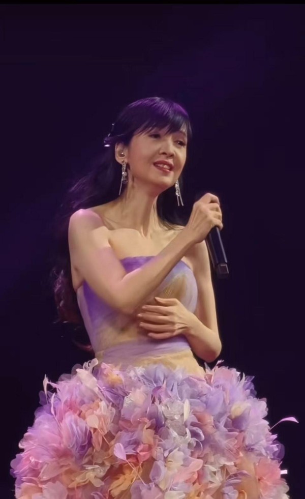在那段被分享的视频里,能看到周慧敏穿着一条紫色露肩裙,和以前的她差别不大,不过从视频中看得出来,那天她的声音和模样都显得不太在状态。