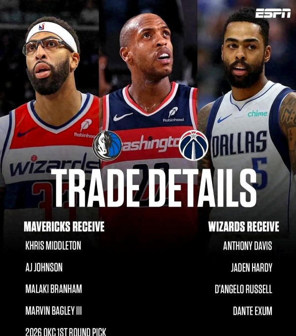 奇才队通过一笔大规模交易得到了顶级内线安东尼·戴维斯。