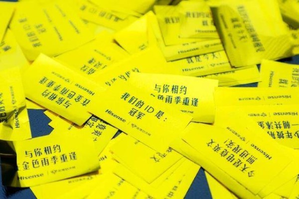 同时,海信还在现场设置了专属金色雨应援墙,粉丝不仅可以在金色雨纸片上写下为主队的专属应援语,还可体验冠军同款“捧杯淋金雨”场景。“信就是冠军”“生而无畏,战至终章”“心怀荣耀,勇往直前”…… 场馆内,应援墙成为一道靓丽的风景线。