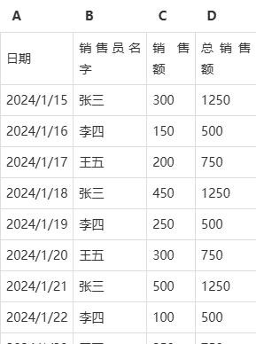 在D列添加“总销售额”