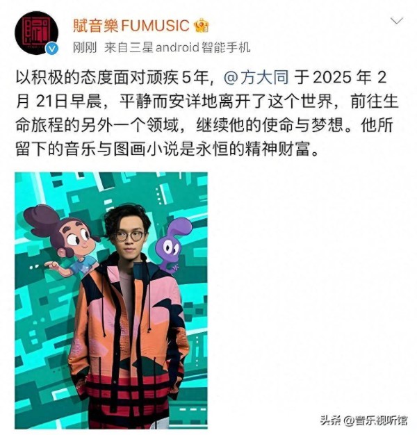 【泪目】41岁方大同病逝!抗病5年坚持创作《梦想家》,最后微博发歌惹全网心碎