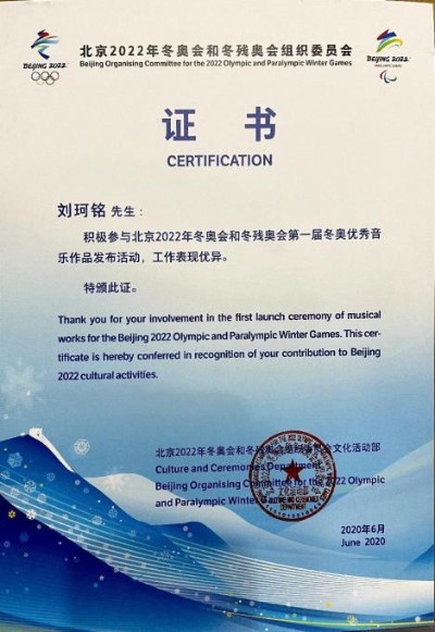 “做音乐不是把音符放进谱子做成旋律这么简单的事,而是如何能将音符进行有机的组合,传达出一种精神。对我来说,一首作品受到大家的喜爱是最重要的,如果能够从我创作的音乐中得到一些安慰,是我最开心的事情。”“音乐于我而言是诠释自我的一种方式,这种方式能够让我听见自己和世界的声音”。这是北京2022冬奥和冬残奥会音乐作品发布优秀工作者刘珂铭的表达与感悟。
