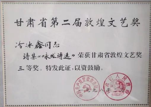 来到兰州后,冷冰鑫从事的工作看上去是跟文学毫无关系的,但是他始终利用工作的机会挖掘文学创作的源泉。冷冰鑫说:“因为工作的关系,我要经常走村下乡,了解当地的情况。就在工作之余,我收集和记录了很多散记,记下了当时的感想,回来后继续创作。有的发表在报纸上,有的投稿到广播电台。”经过多年在文学上的磨砺,冷冰鑫的散文作品逐渐出现在越来越广大的平台,自20世纪80年代起,冷冰鑫的20篇散文先后见诸《人民日报》“大地”副刊,另有30余篇散文短章以专题形式由《北京文艺》一次性刊登,分别成为个人创作活动中的重要经历。