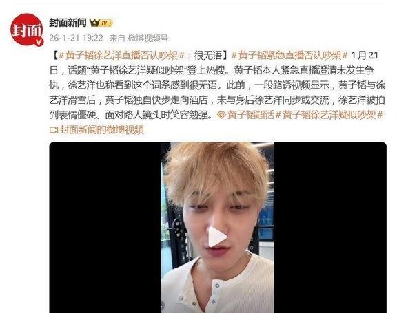黄子韬直播怒怼:我和徐艺洋没吵架!走个路也能上热搜?黄子韬徐艺洋滑雪零互动引吵架猜测,火速直播辟谣