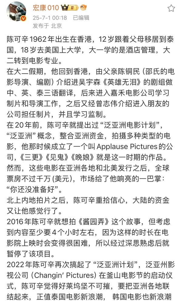 看了陈可辛筹备酱园弄电影的历程,证明不是越努力越成功,上个时代的导演被时间淘汰不可避免