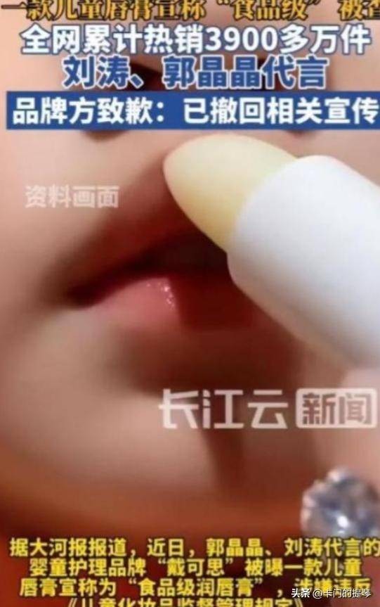 2025年,郭晶晶代言的这款婴童护唇膏上市后,迅速走红,成为家长们的首选,销量大幅飙升。家长们的购买决策基于对郭晶晶的高度信任,可谁也没想到,这份信任却最终因一次违规宣传的风波崩塌。2026年1月初,市场监管部门在日常检查中发现戴可思婴童护唇膏涉嫌违规宣传。产品标签上所写的食品级、宝宝误舔无忧等字眼,直接违反了2022年实施的《儿童化妆品监督管理规定》,该规定明确禁止儿童化妆品使用食品级或可食用这类误导性词汇。