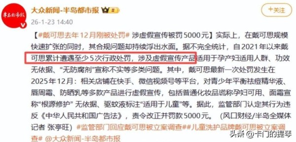 食品级化妆品的说法,显然只是商家的营销噱头,而化妆品与食品的监管标准根本不同,使用这种词汇显然存在严重的安全隐患。而且,令人愤怒的是,戴可思并非首次违规。自2021年以来,这个品牌已经因同类问题遭到处罚五次,甚至在2025年12月刚刚被相关部门点名批评,结果仅仅一个月后便再次出现同类违规问题。事件一经曝光,网友们的怒火迅速爆发,尤其是那些曾购买过该产品的家长们,纷纷表示失望和愤怒,指责郭晶晶辜负了信任,有网友甚至指责她拿孩子的安全换代言费。