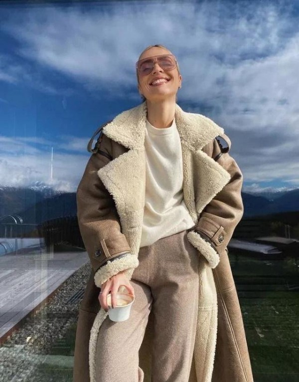 皮毛一体的外套以其坚实的皮面抵御着凌厉的寒风,而内层的羊毛则如温暖的拥抱,为你锁住温度。即使在户外零下二十多度的严寒中,有了皮毛一体的守护,你无需再层层裹衣,内搭也可轻松自如,一件加绒的卫衣或是羊绒衫便能轻松应对。
