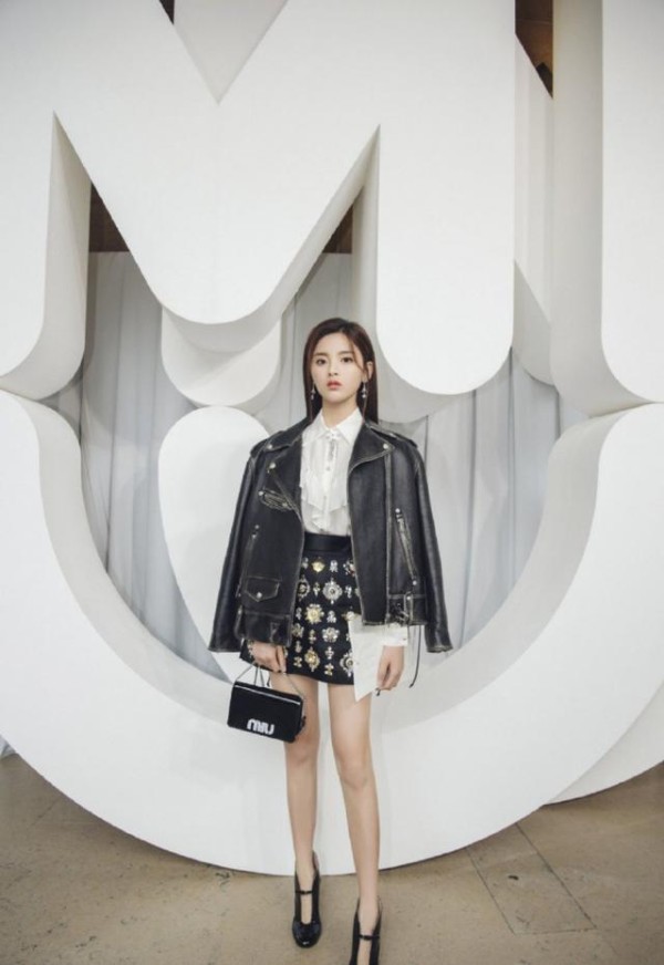 因为材质的原因,皮衣能够给人一种高级很有档次感觉,如果设计的版型好的话,穿起来还会给人一种时尚名媛风的感觉。杨超越在身穿衬衫礼服搭配印花短裙的时候,将皮衣外套套在外面,搭配手里的小提包,看起来还真的挺像时尚名媛~