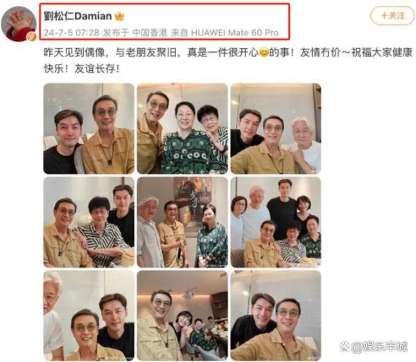 这张照片是在一次聚会上拍摄的,由香港资深演员刘松仁分享在社交平台上。令人惊喜的是,胡歌也出现在了这张照片中。