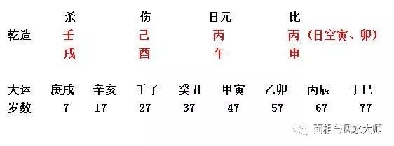 命主生于白露后的第十三天,丙火日元生于酉月不得月令,天干无财星,年上见壬水七杀,又正值酉中辛金财星掌权,如果月令没有透出天干时,有杀就先行其杀。因为八字中七杀主攻身,无论强弱,只有制化后命主才会有成就。