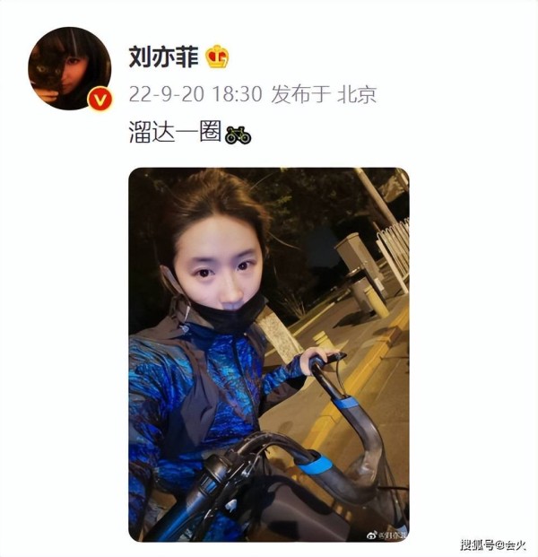 近日,著名演员刘亦菲在社交平台晒出自己骑自行车的素颜照片,并配文“溜达一圈”,引发网友热议。