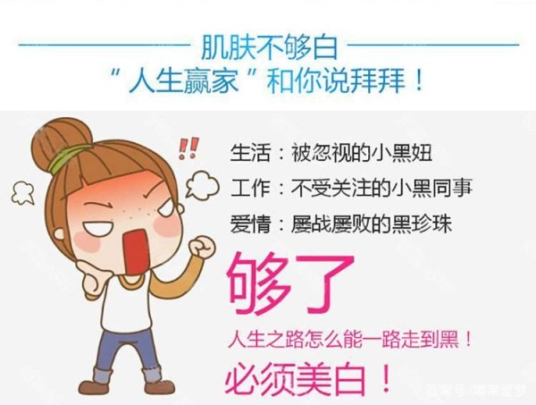由于亚洲女孩子们对“一白遮三丑”这个理论的深信不疑,觉得自己没人缘、没人追、没人爱、没人搭讪都是因为自己不够白不够美,只要能够变白一点世界就会大不相同,只要变白了走在路上恨不得都会被人打包带走。但是如果一针就能世界和平,那世上为啥还有个人种叫黑人,那为啥薛之谦每天都在呼喊着世界和平但却不去打美白针?