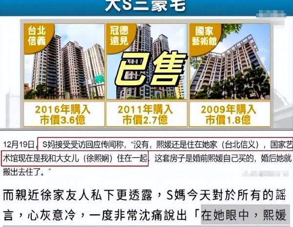 葛斯齐曝光大S遗产情况,生前存款仅剩133万,房贷成烫手山芋