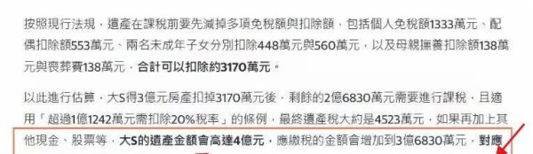 葛斯齐曝光大S遗产情况,生前存款或仅剩133万,房贷或成烫手山芋大S离世后遗产谜团重重!存款仅剩133万,房贷却高达2000万?