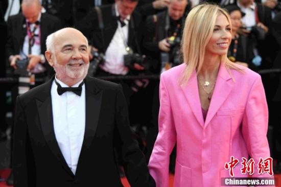 法国影星杰拉尔·朱诺亮相第75届戛纳电影节开幕式红毯。杰拉尔·朱诺曾主演《放牛班的春天》等知名电影。 (中新社记者 李洋 摄)