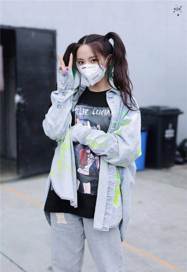 牛仔类单品也是每个人必不可少的时尚单品,一身牛仔套装怎样穿能穿出不一样的风格,来看看杨超越怎么搭配的吧。她穿了一件扎染牛仔外套和浅色牛仔裤,内搭黑色印花T恤,宽松的外套上随意点缀的荧绿色涂鸦让外套看起来多了些时尚感,双马尾的造型可爱满分,还有绿色的挑染与衣服上点缀相呼应,看起来又甜又飒,这身穿搭虽然没什么特别的亮点,但看上去青春甜美,休闲感十足。