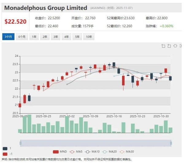 受业绩预测消息提振,MND 股价早盘跳空高开,盘中一度触及25.08澳元,创下自2013年以来的12年股价新高。
