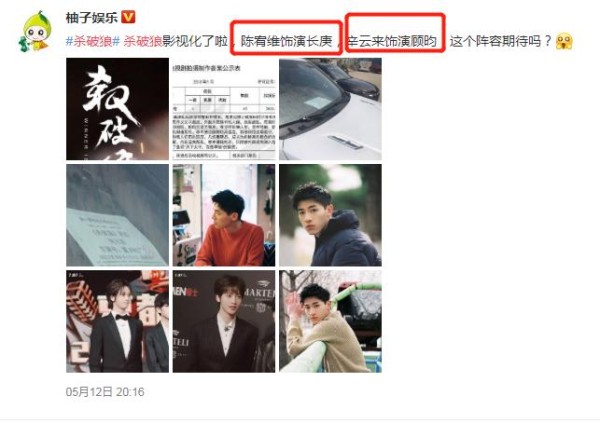 其实前段时间在陈宥维的一次直播中就出现了《杀破狼》的原著,不过在公司的极力否认下不了了之。可能公司是想低调拍摄,没想到这次被曝出了陈宥维饰演长庚辛云来饰演顾昀组成CP的消息,而且剧组已经在象山准备低调开机了。