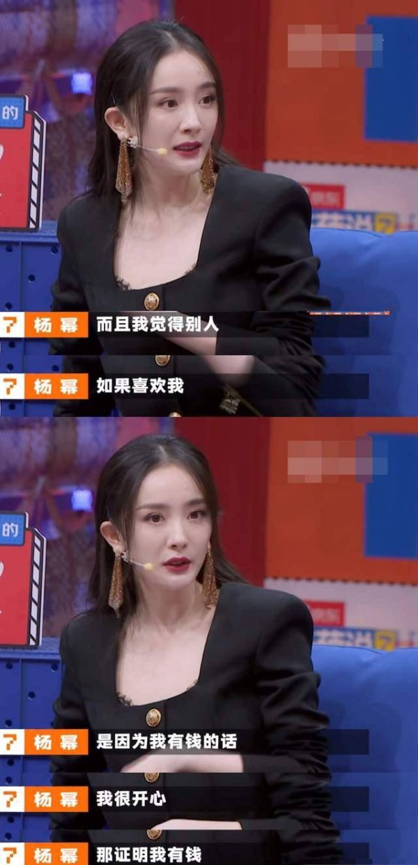 对于如果对方喜欢自己是因为自己有钱这件事,很多人都是反感的,会觉得这样一来对方就不是纯粹的喜欢自己而是喜欢自己的钱,可杨幂就表示没有关系啊,如果对方是因为有钱喜欢自己,也应该开心,至少证明自己有钱不是吗?