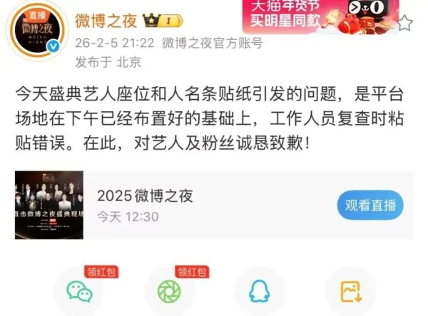 面对持续发酵的舆论压力,微博之夜官方账号在当晚9时22分紧急发文回应。