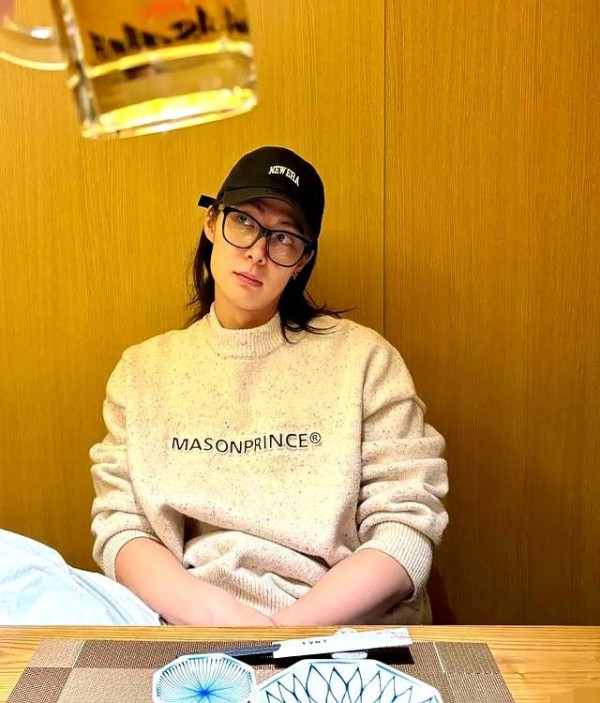 照片里他穿着一件米色的毛衣,戴着个鸭舌帽,还架着一副框架眼镜,头发也长长了不少,没了以前那种清爽利落的感觉。