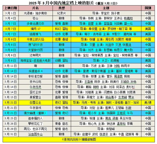2025年仅过了两个月,中国内地影市的年度票房已超过229亿元。3月虽然是淡季,但有上述多部重磅中外影片和《哪吒之魔童闹海》的余威,预计月度票房有望超过去年同期。