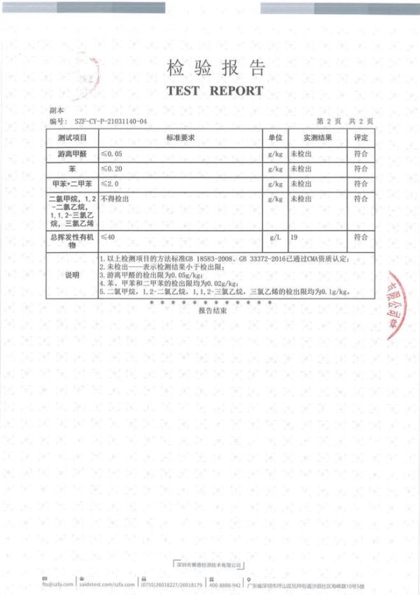 七彩人生木工组装胶检测报告