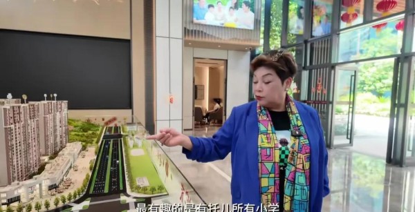 肥妈先去瞅了瞅楼盘的模型,看看整体的布局。看到那里有泳池、健身房,还有学校啥的,她心里杠杠的满意。