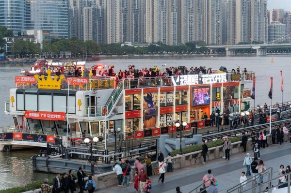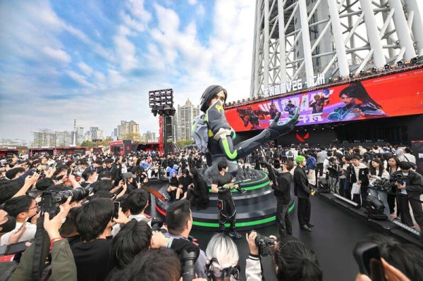 活动现场以电竞视觉与新春氛围打造特色场景,众多无畏契约角色Coser(角色扮演者)亮相,成为现场一大亮点。活动期间,猎德大桥也同步上线本次活动主题光影宣传画面,与地标夜景相映,进一步烘托浓厚的电竞氛围。