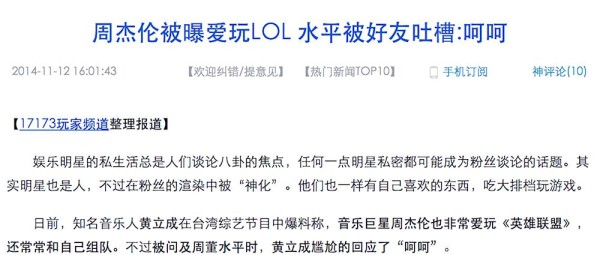 近期,有消息透露周杰伦也涉足了LOL游戏,但他的游戏水平似乎并不尽如人意。