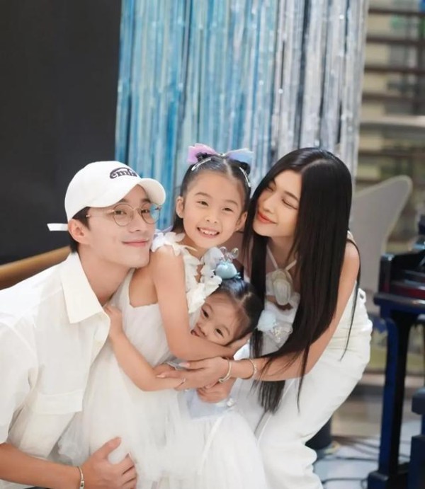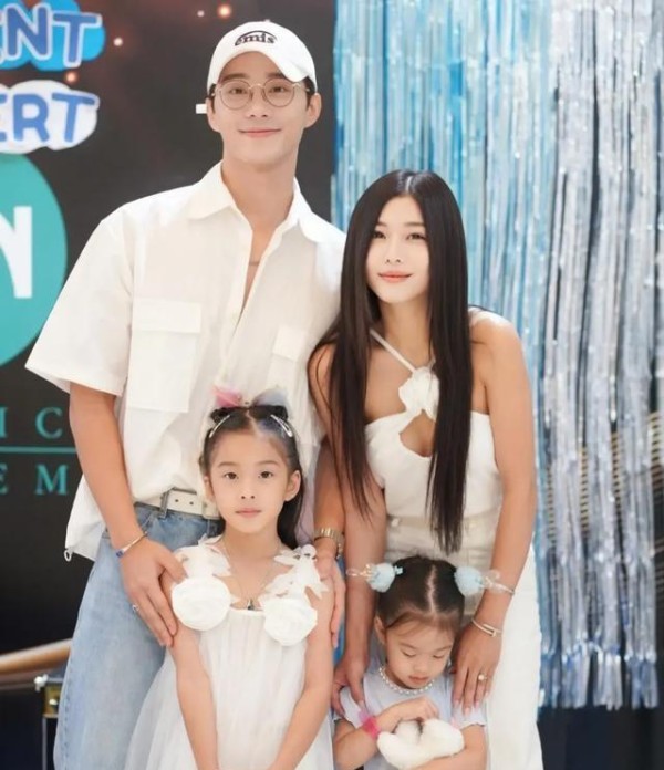 可你要是以为现实生活中也是这个调调,那就错了——活动现场,他带着两个小姑娘一脸慈爱地亮相,一家四口堪比偶像剧里的温馨画面。