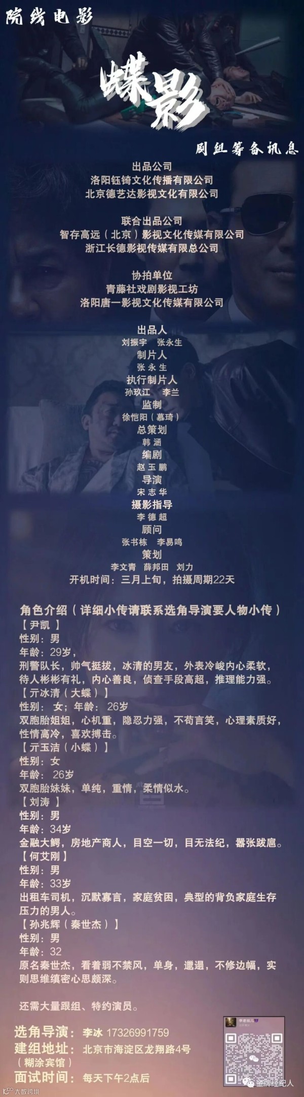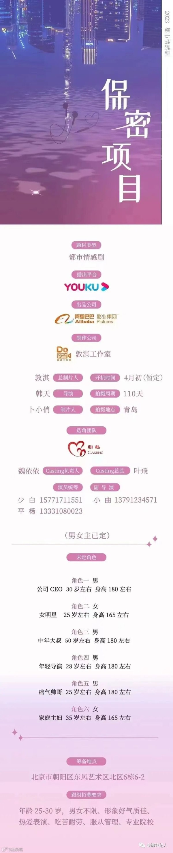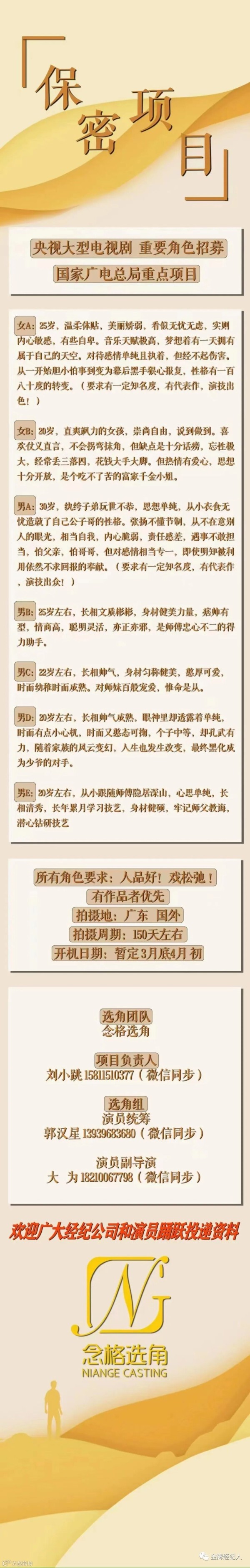 本栏目组讯由小编采集并供业内参考交流使用,信息内容如有变化请根据实际情况核实。各大剧组如有组讯发布,可以联系金牌经纪人,协助扩散!
