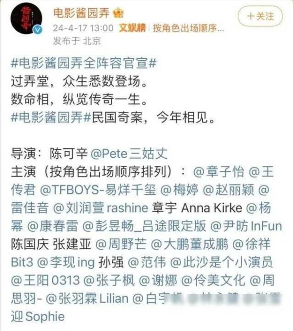 酱园弄官宣:众星云集,阵容强大,别再翻车的期待!