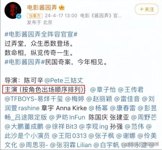 电影《酱园弄》官宣阵容,赵丽颖江湖地位展露无遗