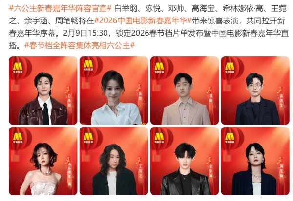 此次新春嘉年华的宣传形式也颇为新颖,和往年那些专门针对院线领导和影院经理的影片发布会不同,今年的发布会将面向C端观众,真正做到为观众而生。据透露,白举纲、陈悦、邓帅、希林娜依·高、王菀之、周笔畅等八位明星将亮相活动现场,带来精彩的表演。这样的发布会不再是单纯的影片推介,而是集表演、互动与展示于一体的盛大场面,想象一下,直播中的炫目场景和各种惊喜,绝对能让影迷们大呼过瘾。
