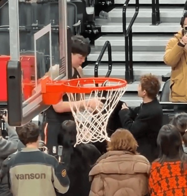【球场外的慰藉与坚持】回到孟菲斯那场比赛的赛后,镜头捕捉到了些许温情。 杨瀚森没有直接返回更衣室,他走到场边,与森林狼队的李凯尔这位中国国家队的队友兼老大哥拥抱寒暄。 李凯尔笑着拍了拍他的后背,两人耳语了几句。 随后,杨瀚森又与前来观赛的山东籍演员任嘉伦互换了礼物,他送出了一件亲笔签名的开拓者9号球衣。 这些球场外的连接,构成了他海外征程中重要的支撑网络。 更衣室里,老将布罗格登对他说:“别让那些哨子钻进你的脑子,继续做你该做的。 ” 这句话,姚明二十多年前也从史蒂夫·弗朗西斯那里听到过。