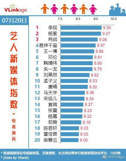 演员寻艺指数榜单竞争激烈,李现杨紫稳居榜首,肖战王一博进前5