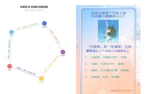 如果不是计算机,没有数据结构和算法,人肯定很难抽象出这样一条关系路径,白居易怎么能和李清照联系起来呢?实在是匪夷所思。